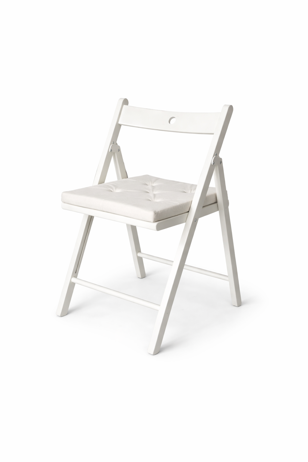Klapptoolile on võimalik juurde rentida pehme, hele toolipadi.